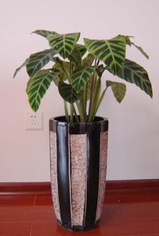 名稱:斑馬竹芋 別名:天鵝絨竹芋、斑馬竹芋、絨葉竹芋 分類:竹芋科肖竹芋屬的多年生常綠草本植物 描述:斑葉竹芋植株具地下根莖,葉單生,根出,植株矮生,株高50—60厘米,是竹芋科中大葉種之一。喜溫暖、濕潤(rùn)和半陰環(huán)境,不耐寒,怕干燥忌強(qiáng)光暴曬。天鵝絨竹芋的生長(zhǎng)適溫18~25℃,3~9月為21~27℃,9月至翌年3月為18~21℃。天鵝絨竹芋葉片寬闊,具有斑馬狀深綠色條紋,清新悅目。盆栽適用裝飾客廳、書(shū)房、臥室等處,高雅耐觀。在公共場(chǎng)所列放走廊兩側(cè)和室內(nèi)花壇,翠綠光潤(rùn),青蔥宜人。 租擺價(jià)格:0.30m——25元/月 0.50m——38元/月