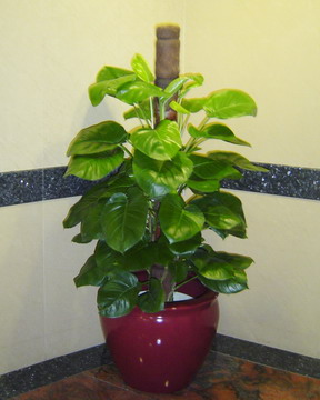 名稱:綠蘿 分類:天南星科綠蘿屬多年生草本 高度:120-180CM 適宜溫度:10℃以上 原產(chǎn)地:印度尼西亞所羅群島、馬來(lái)半島 描述:攀緣向上可達(dá)5米。葉片廣橢圓形,葉寬30厘米左右,盆栽葉10-20厘米,臘質(zhì),暗綠色有金黃色不規(guī)則的斑塊或條紋,光潔挺拔。性喜溫暖、濕潤(rùn),較耐蔭,以間接光照或人工光照為宜,每天8-10小時(shí)。不耐寒,冬天要在10℃以上越冬。是極好的觀葉植物。 租擺價(jià)格:1.20m——29元/月 1.50m——40元/月