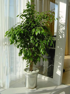 名稱:垂葉榕 別名:小葉榕、細(xì)葉榕、柳葉榕 分類:桑科榕屬常綠喬木 高度:120-300CM左右 適宜溫度:10℃以上 原產(chǎn)地:亞洲熱帶、亞熱帶地區(qū) 描述:高可達(dá)20米,葉碎小綠色,喜溫暖濕潤(rùn)環(huán)境,忌低溫干燥。對(duì)光線要求不太嚴(yán)格,耐寒性較強(qiáng),可耐短暫0℃低溫,耐旱性較差。花葉品種忌陽(yáng)光直射。日照不足則葉片垂軟,充足則葉肉變厚,富有光澤。初放室內(nèi)易落葉,是較好的室內(nèi)綠化植物。大型植株是酒店、寫(xiě)字摟大堂等大型室內(nèi)空間常選綠化植物。 租擺價(jià)格:0.60m——20元/月 0.80m——32元/月 1.50m——46元/月 2.00-4.00m——80-320元/月
