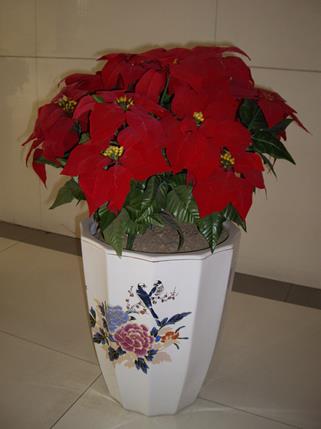 名稱:一品紅 別名:圣誕花 分類:觀花植物 高度:30CM左右 適宜溫度:10℃以上 原產(chǎn)地:墨西哥及美洲熱帶 描述:性喜溫暖、陽(yáng)光充足。莖有白色乳汁,底層葉青,上層葉深紅,自然花期在12月中下旬,正值圣誕節(jié)與元旦前夕,故此得名,極具喜慶效果,是節(jié)日室內(nèi)綠化首選品種。 租擺價(jià)格:0.30m——26元/月 0.50m——35元/月